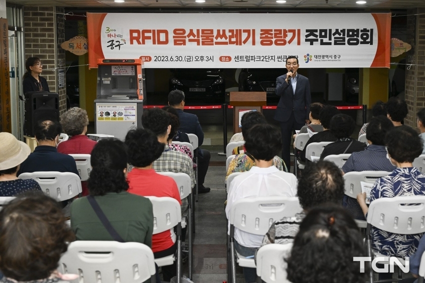 대전 중구(구청장 김광신)는 지난 30일 센트럴파크2단지 아파트에서 음식물쓰레기 RFID 종량기 관련 주민설명회를 개최했다고 밝혔다.