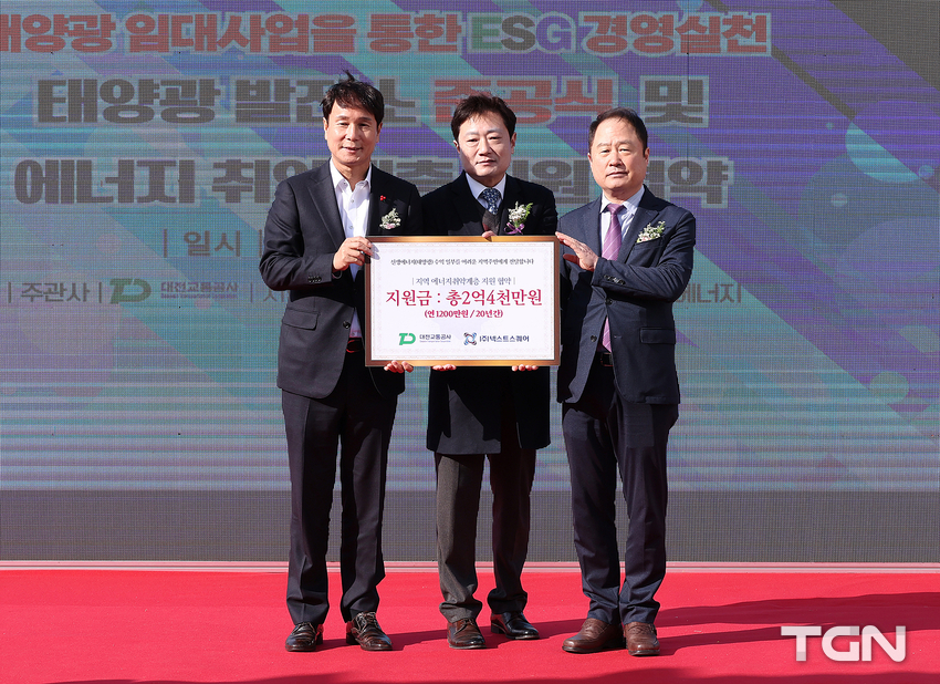 (TGN 땡큐굿뉴스=김정은 기자) 대전시의회 이상래 의장은 8일 대전교통공사 판암차량기지에서 개최된 ‘에너지취약계층 기부금 전달 및 태양광 발전소 준공식’에 참석했다.
