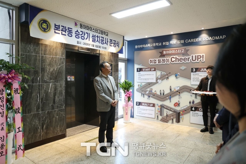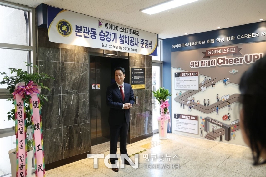 (TGN 대전=서유진 기자) 동아마이스터고등학교(교장 정은환)는 3일 오전 10시 교내 본관동에서 승강기 설치공사 준공식을 개최했다.