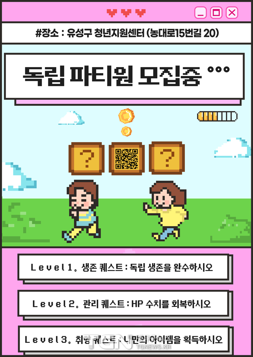 참여 대상은 유성구에 거주하거나 유성구 소재 학교·직장에 다니는 청년 300여 명으로, 참여 신청은 홍보물 내 QR코드를 활용해 상시 접수할 수 있다.