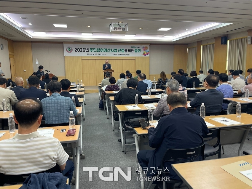 (TGN 땡큐굿뉴스=김정은 기자) 대전시는 9월 29일 시청 세미나실에서 제10기 주민참여예산위원 100명이 참석한 가운데 「2026년 주민참여예산사업 선정을 위한 총회」를 열고, 시민 제안사업을 최종 선정했다.