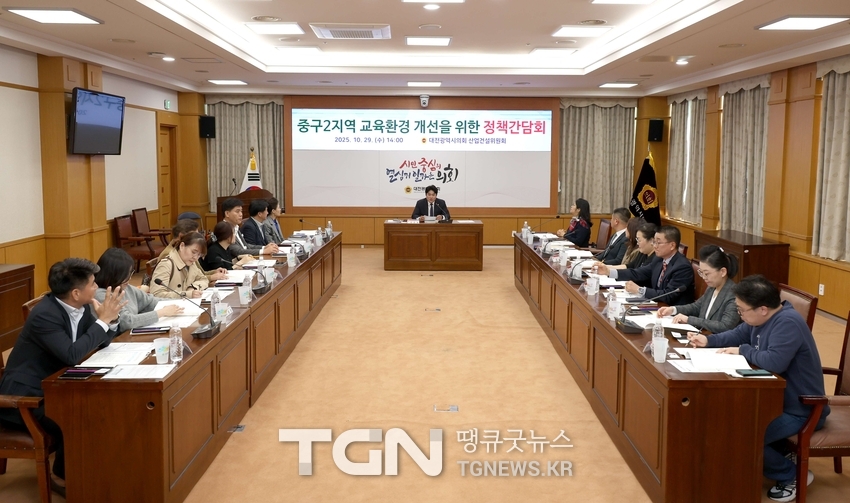 (TGN 땡큐굿뉴스=김정은 기자) 대전시의회는 산업건설위원회 김선광 의원(국민의힘, 중구2) 주재로 29일 대전시의회 소통실에서 ‘중구2지역 교육환경 개선을 위한 정책간담회’를 개최해 지역 현안에 대한 실질적인 해법 모색에 나섰다.