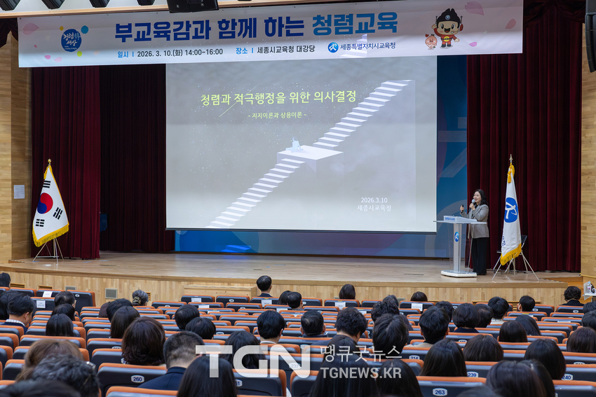 (TGN 새종 심규권기자) 세종특별자치시교육청(교육감 권한대행 부교육감 구연희, 이하 세종시교육청)은 3월 10일(화) 세종시교육청 대강당에서 본청 및 직속기관 교직원이 참석한 가운데 ‘부교육감과 함께하는 청렴 교육’을 실시했다.