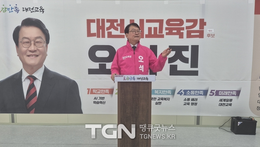 한편 오석진 예비후보는 ‘오감만족 대전교육’을 교육 비전으로 제시하고 있으며 학교만족, 안전만족, 복지만족, 소통만족, 미래만족 정책을 순차적으로 발표하고 있다