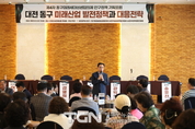 (TGN 땡큐굿뉴스=장수훈 기자) 대전 동구(구청장 박희조)는 3일 ‘동구 미래산업 발전 전략과 대응 방안’을 주제로, ‘제4차 동구 미래세대상생협의체 인구정책 기획포럼’을 개최했다고 밝혔다. 이번 포럼에는 박희조 동구청장, 오관영 동구의회 의장, 박병식 한국공공정책평가협회장을 비롯해 관계자 및 주민 100여 명이 참석했으며, 참석자들은 동구가 직면한 인구 감소와 산업 기반 취약 문제를 극복하기 위한 다양한 해법을 논의했다. 먼저, 이윤구 박사가 ‘동구 미래산업 경제발전 대응전략 연구’를 통해 기업하기 좋은 생태계 조성과 대전역세권을 중심으로 한 ‘대한민국 비즈니스 허브’ 전략을 제안했다. 이어, 송유진 박사는 ‘미래인구와 산업구조 변화에 따른 지역산업 대응방안’을 발표하며, 초고령사회에 대응하기 위한 에이지테크(AgeTech) 산업 육성 전략을 구체적으로 제시했다. 이후 진행된 토론에는 ▲김영진 대전세종연구원장 ▲김영희 동구의회 기획행정위원장 ▲강익하 ㈜어울림디자인 대표 ▲이영행 단국대학교 교수가 참여해 심도있는 논의를 이어갔다. 특히, 참석자들은 에이지테크 산업을 대전역세권 비즈니스 허브의 핵심 콘텐츠로 특화해야 한다는 데 의견을 모으고, ▲삼정지구와의