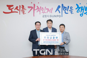 ( TGN 땡큐굿뉴스 = 김복수 기자 ) 대한민국특수임무유공자회 군포시지회(지회장 전용환)가 8일 군포시청 시장실에서 1천만 원의 장학기금을 (재)군포사랑장학회에 기부하는 장학금 출연식을 가졌다. 대한민국특수임무유공자회는 대한민국을 수호하기 위해 특수 임무를 수행하신 애국자분들이 모인 단체로 최근 가평 폭우로 인한 실종자 수색 구조활동에 적극 참여한 바 있으며 충남 예산 집중호우 피해 복구 활동, 소외계층 급식봉사, 경기도내 수중, 수변정화활동 등 각종 봉사활동에 앞장서고 있다. 대한민국특수임무유공자회 군포시지회는 2019년부터 올해까지 7년 연속 장학기금을 기부했으며 누적 기부액은 6,550만 원이다. (재)군포사랑장학회 김성철 이사장은 “장학회에 기탁해 주신 장학금이 학생들의 올바른 인성을 바탕으로 행복한 삶을 영위하고 경제적 여건에 구애받지 않고 역량을 펼칠 수 있도록 교육 기회를 지원하는 데 힘쓰겠다”라고 전했다. 군포사랑장학회 명예 이사장인 하은호 군포시장은 "어려운 가운데 기탁해 주신 소중한 장학기금이 미래를 짊어지고 갈 청소년들에게 큰 도움이 될 것"이라며 "장학사업에 소중하게 사용되도록 하겠다"고 말했다. 군포시 출연기관인 (재)군포사랑장학회는