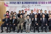 (TGN 땡큐굿뉴스=서유진 기자) 대전 동구(구청장 박희조)는 7일 구청 대회의실에서 ‘2025년도 2분기 통합방위협의회 정기회의 및 위촉식’을 개최했다고 밝혔다. 이날 회의에는 동구통합방위협의회의장을 맡고 있는 박희조 동구청장을 비롯해 1970부대 1대대장 등 25여 명의 위원이 참석했으며, 본격적인 회의에 앞서 신규 및 재위촉 위원 18명에 대한 위촉장 수여식이 진행됐다. 이번에 위촉된 통합방위협의회 위원의 임기는 2년으로, 앞으로 지역 통합방위대비책, 작전·훈련지원 대책 등 지역 방위의 효율적 운용 및 지원에 관한 사항을 심의하고 지원하게 된다. 이어 진행된 회의에서는 2025년 통합방위 주요 일정을 공유하고 8월 을지연습, 9월 화랑훈련 등 비상 대비훈련에 대한 사전 준비와 유관기관 간 협조 체계 강화 방안이 논의됐다. 박희조 동구청장은 “갑작스럽게 직면할 수 있는 위기 상황에서도 구민의 생명과 재산을 보호할 수 있도록 민·관·군·경·소방의 유기적인 협력체계를 공고히 해야 한다”며 “동구의 튼튼한 통합방위 태세 확립을 위해, 다양한 의견 제시와 적극적인 활동을 당부드린다”고 말했다.