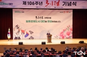 (TGN 땡큐굿뉴스=김정은 기자) 대전시는 1일 오전 10시 30분 시청 대강당에서 제106주년 3‧1절 기념행사를 개최하며, 독립을 위해 헌신한 애국지사들의 희생과 애국정신을 기렸다. 행사에 앞서 시는 국립대전현충원을 찾아 순국선열과 독립운동가들의 넋을 기리는 참배를 진행했다. 이날 기념식에는 이장우 대전시장을 비롯해, 독립 유공자 유가족, 보훈단체, 주요 기관 단체장, 시민 등 500여 명이 참석한 가운데 ▲독립선언서 낭독 ▲기념사 ▲기념 공연 ▲3‧1절 노래 제창 ▲만세삼창 순으로 진행됐다. 먼저, 양준영 광복회 대전지부장과 함께 육동후·육나영 학생, 임소현 대전시 대학생 홍보대사 등 4명이 나누어 독립선언서를 낭독했다. 이 중 육동후·육나영 학생은 1919년 충북 옥천에서 만세운동을 주도하고 주재소를 파괴하다 체포되어 5년간 옥고를 치른 육창주 애국지사의 증손으로 독립선언서 낭독을 통해 3‧1운동의 숭고한 정신을 되새겼다. 이어진 기념 공연에서는 태권아트코리아 청소년 시범단이 태권도를 통해 독립운동의 뜨거운 열기와 불굴의 의지를 역동적으로 표현했으며, 대전시 홍보대사이자 트로트 신동 가수 김태웅 군이 ‘내 나라 대한’을 열창하며 참석자들에게 깊은 감동