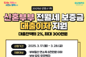 ( TGN 땡큐굿뉴스 = 김복수 기자 ) 군포시가 신혼부부의 주거비 부담 경감과 안정적인 거주환경 조성을 위해 2025년 1차 군포시 신혼부부 무주택자 전월세 보증금 대출이자 지원사업 대상자를 선정하고, 가구당 연 최대 300만원을 지원한다고 밝혔다. 지원 대상은 △부부 모두 군포시에 주민등록 △혼인신고일 기준 7년 이내 △부부합산 연 소득 8천만원 이하 △전월세 보증금 대출잔액 1억5천만원 이하 등 모든 조건을 충족하는 무주택 신혼부부다. 다만 기초생활보장수급자와 공공임대 거주자, 주택도시기금 전·월세 자금 대출자(버팀목 등), 「군포시 청년 전월세 보증금 대출이자 지원사업」 신청 가구(동일 신청년도 중복 수혜 불가)는 지원 대상에서 제외된다. 지원내용은 주택전세자금 대출잔액의 2%에 한해 연 1회 최대 3백만원까지 이자 지원(최대 4회)이 가능하며, 지원금은 자격 여부 심사 후 선정자에 한해 4월 중에 일괄 지급할 예정이다. 신청은 오는 3월 17일부터 28일까지이며, 관할 행정복지센터에 방문하여 신청서 및 구비서류를 제출하면 된다. 하은호 군포시장은 "이번 지원사업을 통해 신혼부부들의 주거비 부담을 덜고, 안정적인 주거 환경 마련에 도움이 되길 기대한다