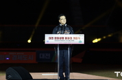 (TGN 땡큐굿뉴스=김정은 기자) 지난 6일 대전시는 대전한화생명볼파크 개장식에 많은 시민들이 한 자리에 모여 대전의 새로운 상징이 될 이곳에 대한 기대감을 표명했다. 대전시장 이장우는 이날 행사에서 한화이글스와 대전체육회, 그리고 계룡건설 관계자들에게 감사의 뜻을 전하며, "대전 한화생명 볼파크가 대전의 명물 브랜드마크로 자리잡기를 기대한다"는 마음을 밝혔다. 이날 개장식 전, 한화생명볼파크 앞에는 대전 시민뿐 아니라 각 지역에서 KTX를 타고 가족들과 함께 왔다며 설렘을 가진 팬들, 자가용으로 운전해서 올라온 해남 친구들까지 오전부터 길게 줄을 서서 기다리는 모습이 목격되었으며, 개장식에 대한 큰 관심을 드러냈다. 대전시민들은 새로운 야구장이 개장되기를 고대하며, 이번 개장식이 대전의 스포츠와 문화 발전에 큰 전환점을 맞이할 것이라는 기대감을 드러냈다. 박종태 한화이글스 대표도 방명록을 작성하고 내빈석에 앉았고 이장우 시장은 축사를 통해 "대전의 스포츠 인프라가 한층 더 강화될 것"이라며, "이번 한화생명볼파크의 개장이 대전 시민들에게 자랑스러운 명물이 될 것이며, 많은 사람들이 이곳에서 즐거운 시간을 보내고, 스포츠를 통한 지역 경제 활성화에 기여할 것