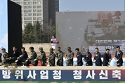 (TGN 땡큐굿뉴스=김정은 기자) 방위사업청(청장 석종건, 이하 방사청)은 11일(화) 정부대전청사 서북녹지에서 신축 청사 기공식을 개최했습니다. 이날 기공식에는 박범계 국회의원, 이장우 대전광역시장, 서철모 서구청장 등 내빈과 일반참석자 총 300여 명이 참석해 방사청의 대전시대 출발을 축하했습니다. 방사청의 대전 이전은 ‘첨단전력 건설과 방산수출 확대의 선순환 구조 마련’과 ‘공공기관 이전 등 지역 성장거점 육성’ 정책과 연계하여 추진되었습니다. 국가균형발전과 국방산업 경쟁력 강화에 기여하고, 지역 경제 활성화와 일자리 창출에도 긍정적 영향을 미칠 것으로 기대됩니다. 청사 신축에는 총사업비 약 2,424억 원이 투입되며, 지하 2층 ~ 지상 21층(연면적 59,742.85㎡, 높이 97.6m) 규모로 건립할 예정입니다. 이번 사업은 설계·시공 일괄방식으로 진행되며, 계룡건설컨소시엄이 실시설계 적격자로 선정되어 사업을 수행하고 있습니다. 신축 청사 공정은, 우선 올해 3월부터 터파기 위주의 우선 시공분 계약과 공사에 착수하여 9월까지 완료 예정입니다. 또한 현재 진행 중인 실시설계를 8월까지 마무리하고, 9월부터 본공사를 시작하여 2028년 6월 준공을 목
