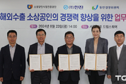 (TGN 땡큐굿뉴스=김정은 기자) 소상공인시장진흥공단(이하 소진공) 박성효 이사장이 23일(금) 오후 14시, 서울 마포 드림스퀘어에서 ㈜한진(사장 노삼석‧조현민, 이하 ‘한진’), 동반성장위원회(위원장 오영교, 이하 ‘동반위’)와 ‘해외수출 소상공인의 경쟁력 향상을 위한 업무협약’을 체결했다. 이번 협약은 해외 진출 또는 해외진출 예정인 소상공인의 수출확대를 위한 상생협력체계 구축을 위해 마련되었다. 앞으로 각 기관은 ▲소상공인의 국내·외 물류활성화를 위한 상생협력체계 구축 ▲해외수출 선정 소상공인 대상 국내 통관 및 현지 배송체계 지원 ▲해외 온·오프라인 유통망을 활용한 소상공인 해외진출 프로그램 등을 협력 추진하기로 했다. ◦ 특히, ㈜한진이 보유하고 있는 각국의 물류기지를 무상 활용하여 해외 수출 시 발생하는 물류 보관비용을 절감할 수 있도록 지원하고, 수출 물류비 원가제공으로 소상공인의 비용 부담을 최소화함으로써 소상공인이 해외 시장에 쉽게 진출 할 수 있는 발판을 마련한다. 한편, 소진공은 지난 7월 3일 정부가 발표한 「소상공인‧자영업자 종합대책」에 따라 유망 소상공인이 해외 시장에서 경쟁력을 가질 수 있도록 밀착 지원하고 있다. 이에 따라, ▲