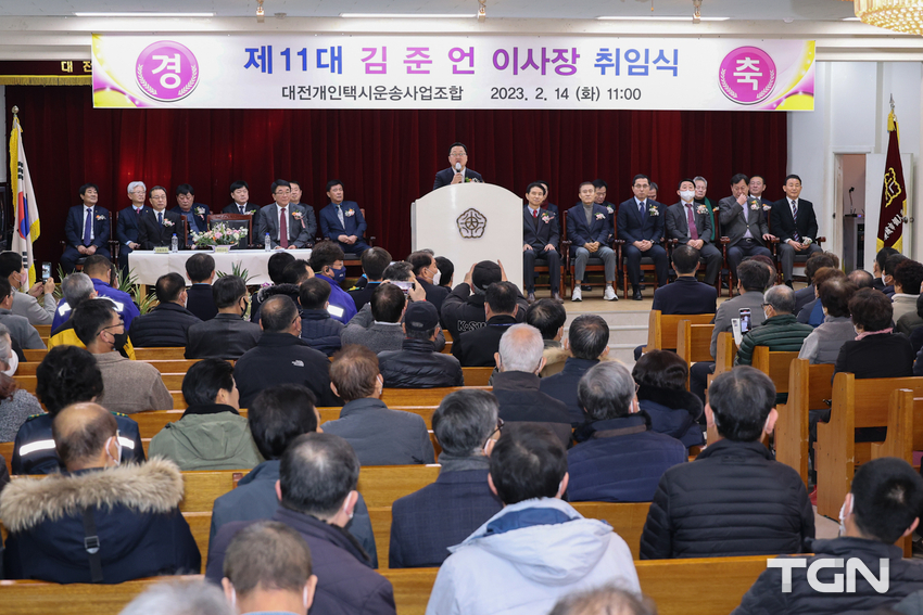 (TGN 땡큐굿뉴스=김정은 기자) 이장우 대전시장은 14일 오전 대전광역시개인택시운송사업조합 3층 대강당에서 개최된 제11대 이사장 취임식에 참석하여 김준언 이사장 취임을 축하했다.