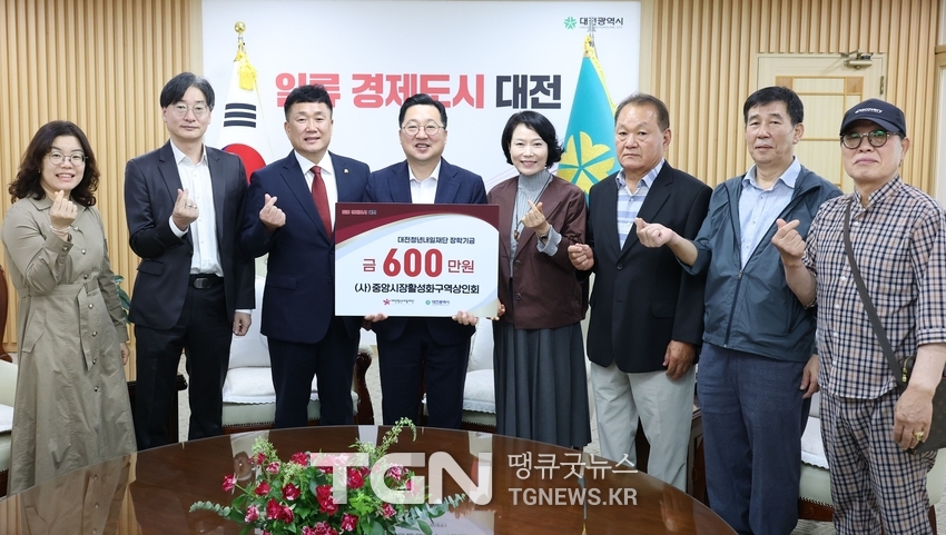 (TGN 땡큐굿뉴스=김정은 기자) 대전시는 2일 시청에서 열린 기탁식을 통해 중앙시장활성화구역 상인회가 「2025 대전 0시 축제」 중앙시장 푸드페스타 운영 수익금 600만 원을 대전청년내일재단에 장학기금으로 전달했다고 2일 밝혔다.