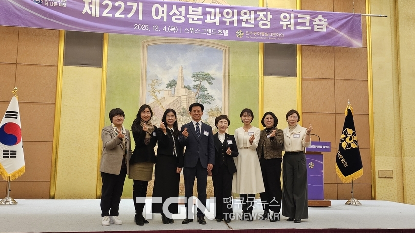 (TGN 땡큐굿뉴스=서유진 기자) 제22기 민주평화통일자문회의(민주평통) 여성분과위원장 워크숍이 4일 서울 스위스그랜드호텔에서 열렸다. 이번 워크숍은 전국 여성분과 위원장을 대상으로 통일 관련 정책을 공유하고, 2025년 활동 전략을 논의하기 위해 마련됐다.