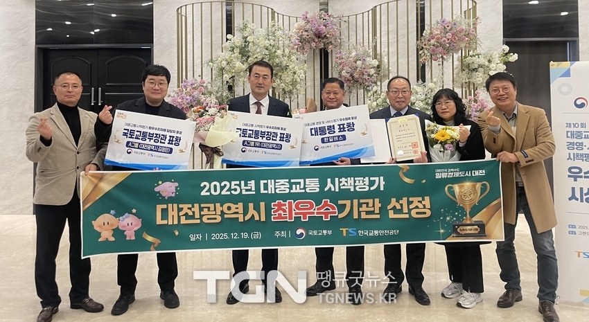 (TGN 땡큐굿뉴스=김정은 기자) 대전시는 국토교통부 주관 2025년 대중교통 시책평가에서 최우수기관으로 선정돼 19일 장관 표창을 수상했다.