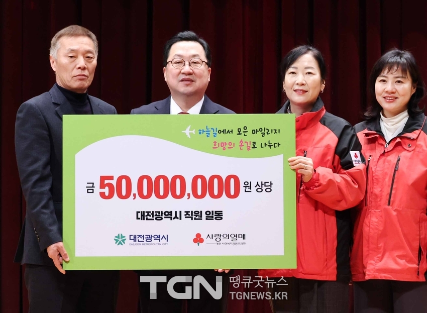 이장우 대전시장은 “직원 한 분 한 분의 마음이 모여 만든 이번 기부는 금액보다 그 과정과 의미가 더욱 소중하다”라며, “앞으로도 일상 속에서 실천하는 나눔이 시정 전반에 자연스럽게 뿌리내릴 수 있도록 적극 지원하겠다”라고 말했다.
