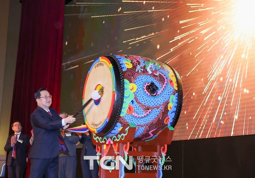 이날 선포식에서 이장우 대전시장은 통합설명회를 찾은 주요 내빈들과 대전경제의 도약과 기업들의 건승을 기원하는 마음을 담은 타북 세레모니를 진행했다.