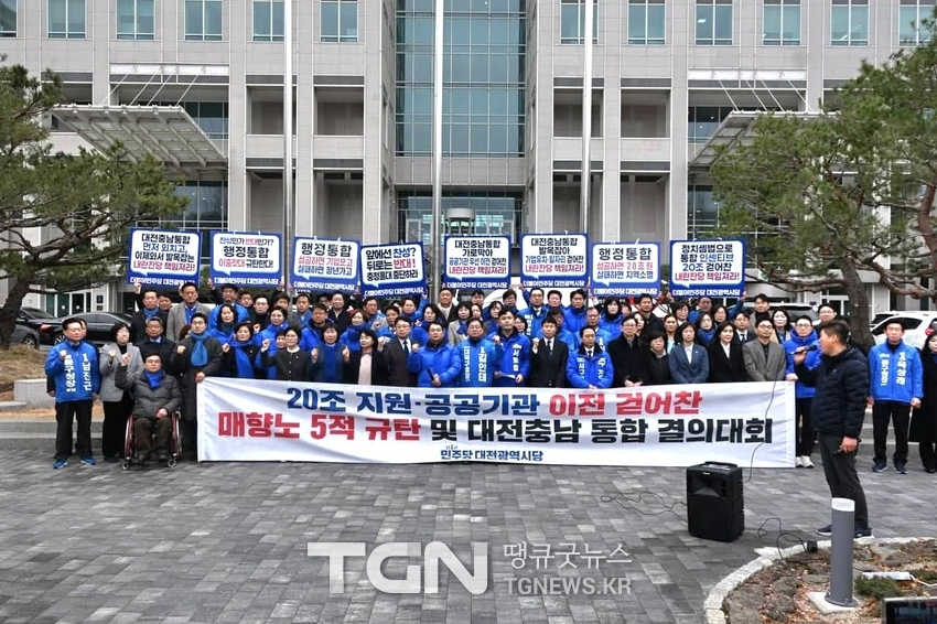앞서 이날 오전에는 대전시청 앞에서 ‘20조 지원·공공기관 이전 걸어잠근 매향노 5적 규탄 및 대전충남 통합 결의대회’도 열렸다. 행사에는 지역 국회의원과 시·구의원, 당원 및 지지자들이 대거 참석해 통합 추진 의지를 재확인했다.