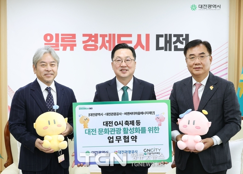 (TGN 대전=김정은 기자) 대전시는 12일 ‘2026 대전 0시 축제’의 성공적 개최와 대전 문화관광 활성화를 위해 대전관광공사, 씨엔씨티마음에너지재단과 업무협약을 체결했다.