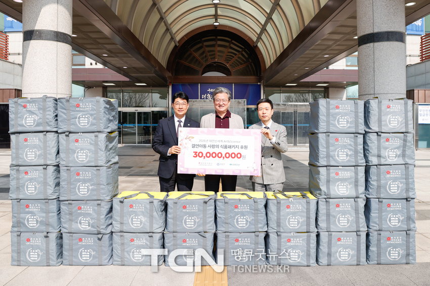 [TGN대전 심규권기자] 대전 유성구(구청장 정용래)는 17일 대전신세계 Art&Science(대표이사 이용환)와 초록우산 어린이재단 대전지역본부(본부장 최승인)가 3,000만 원 상당의 식품 패키지를 기탁했다고 밝혔다.