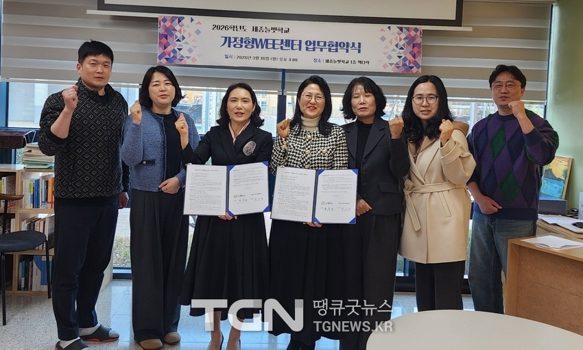 [TGN세종 심규권 기자] 세종늘벗학교(학교장 박옥남)는 2026년 3월 16일 교내에서 나다움 사회적협동조합과 ‘세종늘벗학교 가정형 Wee센터’ 운영을 위한 민간위탁 업무협약을 체결하고, 세종 지역 학업중단 위기 학생 지원을 위한 협력 체계를 구축했다.