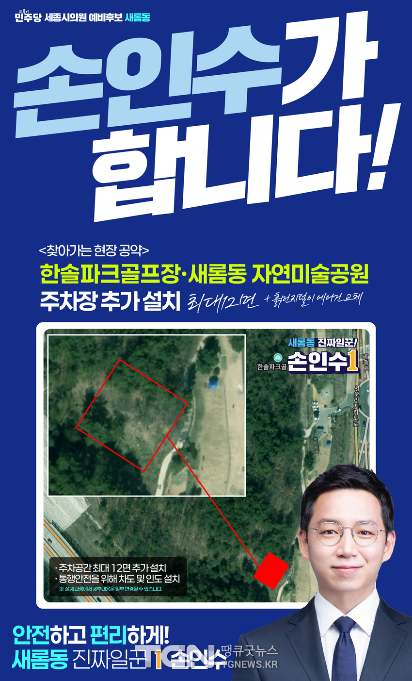 [TGN세종 심규권 기자] 손인수 새롬동 세종시의원 예비후보는 부엉뜰근린공원 내 한솔파크골프장과 새롬동 자연미술공원 일대를 방문해 동호회 관계자 및 이용 주민들과 간담회를 갖고 주차장 확충 등 현장 민원 해결 방안을 점검했다고 밝혔다.