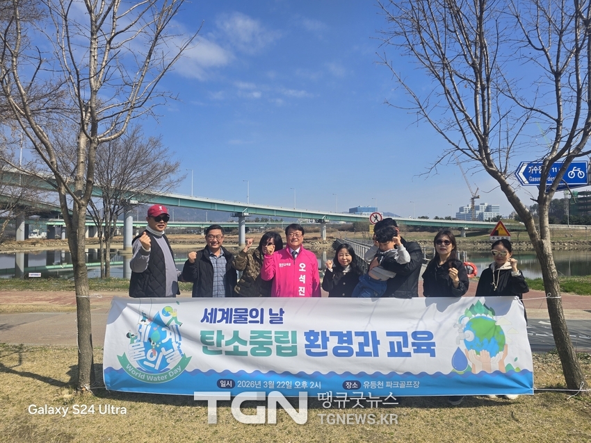 오석진 대전광역시교육감 예비후보는 3월 22일 세계 물의 날을 맞아 캠프가족들과 함께 유등천변을 찾아가 EM흙공던지기와 천변 쓰레기 줍기를 하였다.