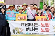 (TGN 땡큐굿뉴스=김정은 기자) 대전 동구(구청장 박희조)는 18일 동신중학교 일대에서 박희조 동구청장, 동구보건소 직원, 동신중학교 관계자, 판암파출소 관계자, 사랑뜰어린이집 관계자, 판암2동 통장협의회와 지역사회 보장협의체 위원 등 총 50여 명이 참석한 가운데 금연 및 절주 홍보 캠페인을 실시했다. 이날 캠페인은 “담배는 노답, 나는 노담”이라는 구호 아래 흡연자의 금연 촉진과 절주 문화 조성으로 자가 건강관리 인식을 제고하고 건강생활을 실천하는 계기를 마련하고자 추진됐다. 박희조 동구청장은 “이번 캠페인이 금연과 절주의 중요성을 알리고 주민들의 건강 증진에 도움이 되는 계기가 되길 바란다”며“ 구민과 함께 깨끗한 금연환경 조성과 절주 문화 만들기에 최선을 다하겠다고” 말했다.