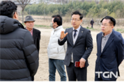(TGN 땡큐굿뉴스=김정은 기자) 대전광역시의회 민경배의원(국민의 힘, 중구3)는 6일(목) 태평동, 유천동, 산성동 일원 유등천변 현장을 찾아 지역주민의 애로사항에 대하여 현장 점검했다. 먼저 산성동 한밭가든 옆 유등천변에 조성된 축구장을 방문하여 지역주민들의 불편 사항으로 지적된 체육시설 환경을 점검했다. 지난해 장마철 폭우로 인해 쓸려나간 축구장의 복토를 유등천 준설토를 깔아서 문제가 된다고 지적했다. 먼지 날림과 안전사고 발생 위험을 낮추기 위해서 최소한 마사토를 깔아 단단히 다져야 한다고 강조하며 소관기관인 하천관리사업소에 개선을 요구했다. 이어서 뿌리공원 주차장으로 이동하여 주민들의 야외 활동 증가로 인해 걷거나 자전거를 타고 뿌리공원 인근까지 산책과 운동을 즐기는데 주민들이 휴식할 수 있는 공간이 부족하다고 지적하고 벤치 등의 휴식 시설물을 확충해 줄 것을 당부했다. 다음으로 유등천 꽃단지 조성 예정지를 방문하여 복지환경위원회에서 지적했던 계절별 꽃단지 조성사업과 관련하여 대전시만의 특색있는 사업을 추진하고, 사후관리도 만전을 기해줄 것을 요청했다. 마지막으로 도마교 교량하부 하천변을 방문하여 노인분들의 도박판으로 전락해 있는 공간을 온 가족이