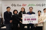 (TGN 땡큐굿뉴스=김정은 기자) 지난 23일 동구청 접견실에서 다온회(회장 최난정)는 천사의 손길에 사랑의 성금 기탁했다. 최난정 회장을 비롯한 2명의 기부자는 퇴근 후에도 붕어빵과 옥수수, 꽃을 판매하여 작년 한해 수익금 전액을 천사의 손길에 기탁해 어려운 이웃돕기를 실천 했다. "앞으로도 꾸준히 30년, 50년 몸이 건강할 때까지 후원을 실천 하며 이웃 나눔으로 희망을 전하겠다"라고 밝혔다.