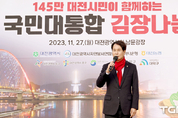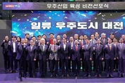 (TGN 땡큐굿뉴스=김정은 기자) 대전시는 29일 대전 이스포츠경기장에서 명실상부 우주기술혁신의 글로벌리더로 거듭나기 위한 청사진을 담은 비전선포식을 개최했다. 이날 행사에는 대전의 우주산업 육성 비전을 공유하고 협력체계를 공고히 하기 위해 이장우 대전시장을 비롯해 지역 우주연구기관장과 대학 총장, 대전 뉴스페이스 발전협의회장(솔탑 사공영보 대표) 등 내․외빈과 기업 관계자 250여 명이 참석했다. 국내 최고 수준의 드로잉․메타버스 아티스트인 염동균 작가의 ‘화성으로 인도하는 미래 우주 이야기’공연으로 막을 연 행사는 대전의 우주산업 육성을 위해 수립 중인 우주산업 육성 5개년 계획을 바탕으로 실행력 있는 추진 전략을 소개한 이장우 대전시장의 비전 발표에서 절정을 이뤘다. 이 시장은 체계적인 우주산업 육성을 위해 ▲미래 우주기술개발(연구개발) ▲우주기업 경쟁력 확보(산업육성) ▲미래 우주혁신인력 양성(인력양성) ▲대전형 우주생태계 구축․확대(생태계구축) ▲대전 우주기업 성장기반 조성(인프라구축) 등 5대 분야 20대 전략을 수립하여 추진할 것임을 선언했다. 이어 세부과제로 ▲대전 위성(SAT)프로젝트 ▲우주탐사 등 미래우주기술 개발(연구개발) ▲글로벌 앵커기