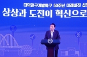 윤석열 대통령 격려사 자랑스러운 과학기술인 여러분, 대덕특구 50주년을 진심으로 축하드립니다. 50년 전, 논과 밭이었던 이곳 대덕은 70년대 초 박정희 대통령께서 국방과학연구소를 설립하면서 우리나라 첨단 연구 개발의 중심으로 발전해 왔습니다. 17,000여 명의 박사급 인재들과 26개 출연연구기관, 2,400여 개 기업, 7개 대학이 모여 매년 약 20조 원 이상의 부가가치를 창출해내고 있습니다. ‘과학입국’의 기치 아래 쉼 없이 달려온 결과 이제 대전과 대덕은 대한민국 과학의 중심으로 자리잡았습니다. 전쟁의 폐허에서 가내 수공업으로 출발해 철강, 조선, 화학 등 중화학공업에 이어 디지털, 반도체, 이차전지 등을 선도하는 첨단산업 국가로 우리는 발전했습니다. 세계적으로 유례없는 대한민국의 이러한 고도성장은, 압축성장은 과학기술인의 땀과 열정으로 이뤄낸 것입니다. 이제 과거 50년의 영광 위에 새로운 50년을 준비해야 합니다. 국가 경쟁력은 과학기술에 달려 있습니다. 새로운 도약을 위해 세계를 선도하는 First Mover로 탈바꿈해야 할 때입니다. 양적 위주의 성장에서 질적 위주의 성장으로, 추격형에서 선도형으로 전환해야 합니다. 국가 R&D 재정