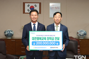 (TGN 땡큐굿뉴스=김정은 기자) 대전광역시교육청(교육감 설동호)은 9. 26.(화) 15시 대전광역시교육청 접견실에서 NH농협은행 대전본부(본부장 이재윤)로부터 대전행복교육장학금 2억 원을 기탁받았다고 밝혔다. 기탁된 장학금 2억 원은 대전행복교육장학재단의 장학기금으로 적립될 예정이며 기금에서 발생되는 운용소득은 저소득층 및 재능우수 학생 장학금, 체육우수 학생 장학금, 국제교류 지원비 등으로 쓰여질 예정이다. 이날 기탁식에 참석한 NH농협은행 대전본부 이재윤 본부장은 “우리지역의 어려운 학생들이 꿈을 펼칠 수 있도록 도움을 주고자 장학금을 기탁하게 되었다.”라고 기탁 목적을 밝혔으며, “NH농협은행 대전본부는 앞으로도 우리지역의 사회공헌에 앞장설 것이다.”라고 말했다. 설동호 대전광역시교육감은 “무려 2억 원의 장학금을 기탁해주시는 NH농협 은행 대전본부에 감사드린다.”라며 “공정하고 투명한 장학생 선발과 장학금 관리를 통해 소외계층에게 소중한 장학금이 잘 전달될 수 있도록 최선을 다하겠다.”라고 감사 인사를 전했다.