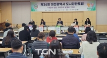 (TGN 땡큐굿뉴스=서유진 기자) 대전시는 10일 오전 10시 시청 세미나실에서 2030 경관계획 재검토 및 그동안의 여건 변화를 반영한‘2040 대전광역시 경관계획 수립’을 주제로 관련 전문가, 시민, 공무원 등 100여 명이 참석한 가운데 도시경관 포럼을 개최했다. 이번 포럼은 일류경제도시로 한단계 도약한 대전시의 미래 비전을‘2040 대전광역시 경관계획’을 통해 구체화하고 대전시 경관을 다변화하는 전략을 논의하기 위해 마련됐다. 이날 주제 발표를 맡은 박준완 ㈜오씨에스도시건축 이사는 대전시의 강점인 다양한 경관 요소에 대한 실천적 과제를 제시하고 차별화된 5개구의 특색을 담아내는 대전시의 경관 미래상과 전략을 제시했다. 포럼은 목원대학교 최정우 교수가 좌장을 맡아 토론을 진행했다. 전문가 패널로는 한남대학교 백한열 교수, 양승희 대전연구원 책임연구위원, 이주경 건축공간연구원 부연구위원, 진은미 에스지이엔지 건축사사무소 대표가 토론자로 참여하였고 대전시 총괄건축가 강인호 박사가 배석하여 조언하며 대전시 미래 경관상 정립과 실천 전략에 관한 다양한 의견을 공유했다. 최은영 대전시 도시경관과장은 “이번 2040 대전시 경관계획 수립 방향은, 자치구의 다양하고